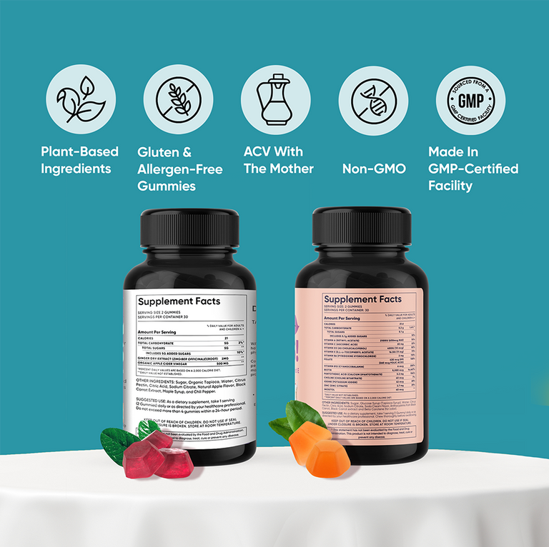 ACV + natural ginger root extract may help encourage “sustainable energy” which is the type of energy that supports a clear mind and motivation for hours without sudden “crashes” that normally come from sugary energy drinks.